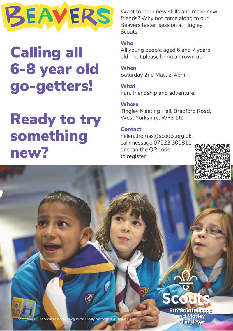 Want to learn new skills and make new friends? Why not come along to our Beavers taster session at Tingley Scouts, the perfect introduction to fun, adventure, and friendship.